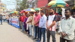 রোববার (৮ মার্চ) বেলা ১২টায় মহানগরীর সাহেব বাজার জিরো পয়েন্টে আয়োজিত এক বিশাল মানববন্ধনে সাংবাদিক নেতারা এই ন্যাক্কারজনক ঘটনার তীব্র নিন্দা জানান এবং চিহ্নিত সন্ত্রাসীদের দ্রুত গ্রেপ্তারের দাবি তোলেন।